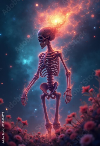 skeleton, galaxy, star, flower, surreal, cosmos, art, colourful, vibrant, fantasy, celestial, mystical, human, bone, illustration, creativity, design, concept, nature, space, beauty, magic, high-coloured, universe, spiritual, abstract, cloud, blooming, artistic, aethereal, night, science, dark, glowing, imagination, decoration, background, aesthetic, symbolism, portrait, visual, trendy, lifestyle, emotional, inspiration