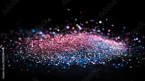 A vibrant swirl of colorful glitter sparkles against a dark background, creating a magical and enchanting visual effect.