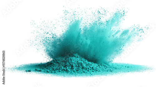 A vibrant teal powder explosion creates a dynamic and impactful visual, perfect for adding energy and color to designs, isolated on transparent background