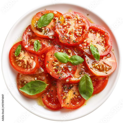 tomatoes, salad, red, yellow, onion, basil, plate, fresh, vegetable, healthy, food, dish, meal, vegetarian, diet, nourishment, organic, slice, round, green, leaf, oil, dressing, seasoning, spice, pepper, salt, transparent, background, cut-out, image, graphic, visual, art, design, photo, culinary, receipe, ingredient, tasty, delicious, appetising