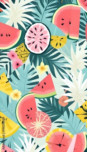 A vibrant tropical-pattern featuring watermelon