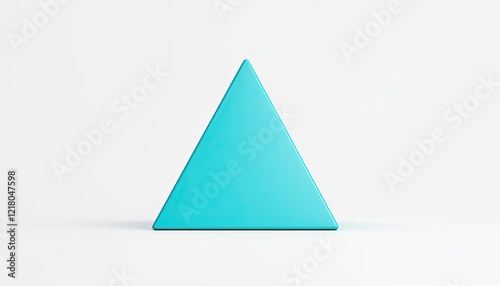 A vibrant turquoise triangle standing upright on a minimalistic white background, emphasizing simplicity