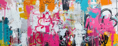 A vibrant urban mural background with bold street art, graffiti, and the textures of concrete walls and colorful spray paint, creating a dynamic and artistic environment.