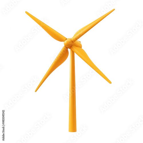 A vibrant, yellow wind turbine standing tall, showcasing renewable energy technology on a white isolated background.
