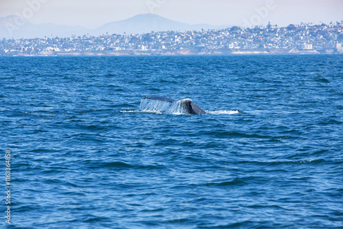 A view of a tail fluke of a humpback whale, seen off the coast of Southern California.