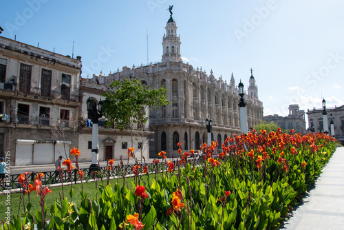 A view of beautiful art deco buildings in the City of Havana, Cuba