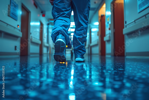 A view of doctors' legs in hospital corridors or on the way to the operating room