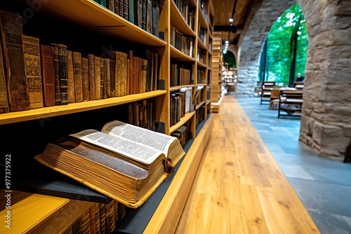 view, ancient, library, filled, old, manuscript, bible, religious, text