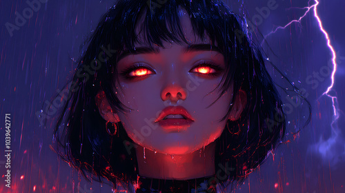 stormy, night, infamous, lightning, darkness, smirk, intention, drama, anime, contrast, intense, character, atmosphere, illustration, mood, shadow, emotion