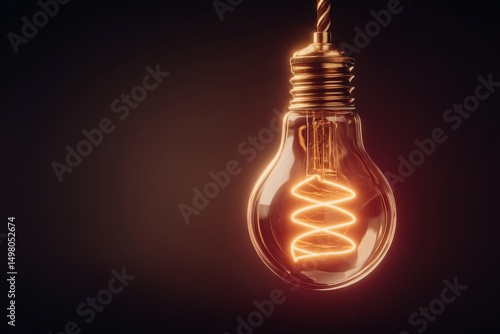 A vintage light bulb hangs against a dark background, with a glowing spiral filament creating an inviting and warm ambiance. The unique design emphasizes its retro aesthetic.