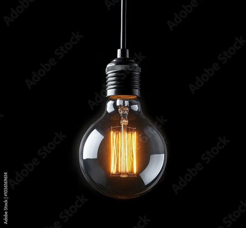 A vintage style light bulb illuminated against a dark background showcasing warm glow