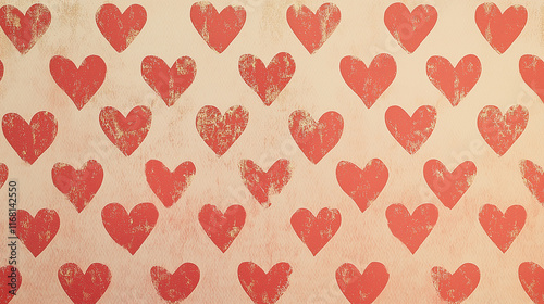 A vintage-style wallpaper with small, repeating heart patterns in muted tones of red and gold, evoking a nostalgic Valentine's atmosphere.