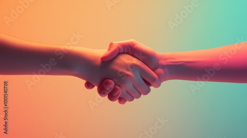 A virtual handshake on a calming gradation color background, illustrating modern digital communication and professional unity