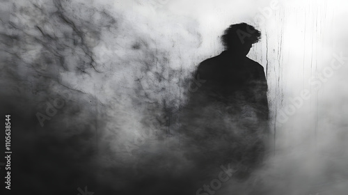 depression, rain, black, white, image, window, silhouette, person, inside, emotion, sorrowful, mood, loneliness, darkness, atmosphere, detail, environment, view, drama, stillness, aesthetic, visual, feeling, shadow, contrast, texture, light, depth, story