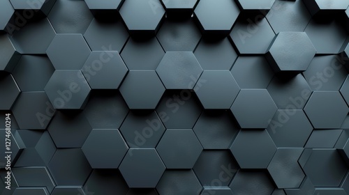A wall adorned with black hexagonal tiles forms a striking geometric pattern, enhancing the modern aesthetic of the interior. The uniform design adds depth and texture