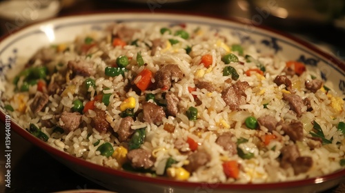 A warm and hearty serving of Northern fried rice with fragrant spices and crisp, colorful vegetables.