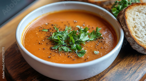 A warm bowl of homemade lentil soup with fresh herbs and a side of whole wheat bread (3)