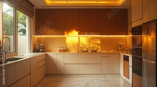 A warm tone modern kitchen.