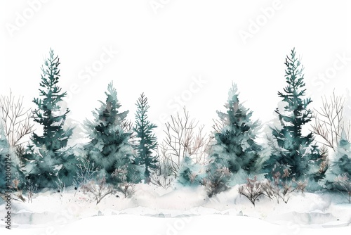 storybook, illustration, children, watercolor, painting, winter, forest, landscape, pine, snow, snowy, nature, art, artwork, scenery, environment, green, white, blue, background, season, cold, glacé, frost, branch, abstract, peaceful, quiet, calmness, calm, beauty, stillness, magic, whimsical, cosy, elegant, delicate, dreamy, aethereal