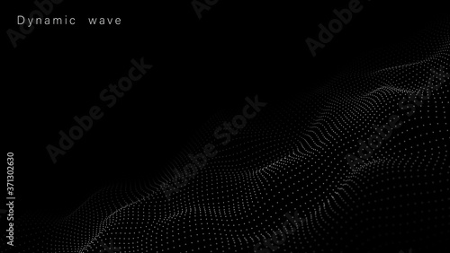 A wave of moving particles. Abstract 3d vector illustration on a dark background.