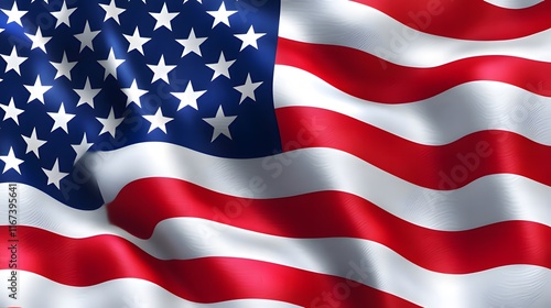 A waving American flag showcasing its stars and stripes in a vibrant design.