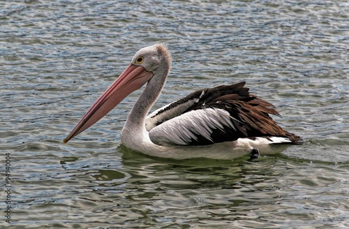 A white Australian pelican wandering in a lake. Taken in Mandurah, Australia