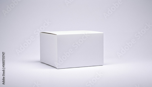 A white cardboard box sits on a white surface against a white background, presenting a minimal clean composition with balance, clarity, and subtle modern elegance.