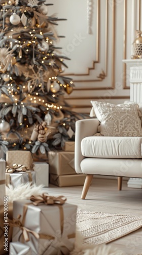 white, couch, sit, front, christmas, tree, room, present, lot, winter, light, home, interior, celebration, background, living, decorated, festive, new, holiday, seasonal, year, gift, christmas, design, traditional, merry, december, indoor, beautiful, house, fireplace, nobody, modern, garland, green, warm, fir, lifestyle, wall, box, style