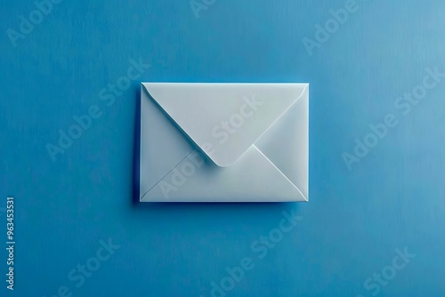 white, envelope, blue, background, wall, letter, chain, mail, square, flat, lay, center, way, facing, toward, right, side, frame, made, paper, cardboard, smooth, glossy, finish, edge, curled, giving, three-dimensional, effect, solid, colours, making, racked, out, taken, perspective, looking, down