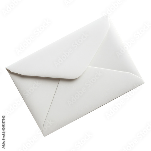 A white envelope with a white stamp on it. The envelope is sitting on a white background. The envelope is unopened and has a simple design