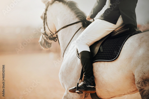 horse, horseback, sport, white, equestrian, sunlight, dressage, competition, equine, stirrup, horsemanship, arena, boot, rider, fast horse, mare, riding, show, motion, race, purebred, champion, horseman, animal, mammal, leg, beautiful, nature, farm, blur, shoe, astride, body, pony, seat, sportive, foal, grey, strap, black, bridle, sunny, light, morning, dawn, fast