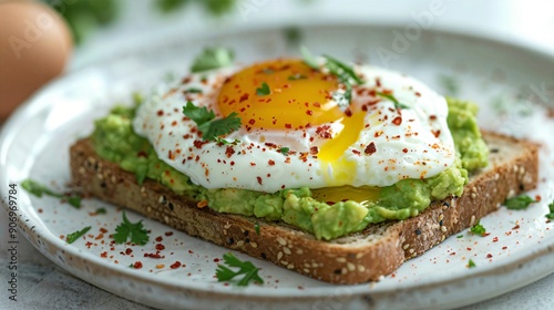egg, slice, tomatoes, depth of field, still life, guacamole, plate, sandwich, parsley, bread, peak, food, topping, vegetable, toast, fries, white, avocado, background, realistic, onion