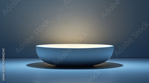 A white podium made of smooth ceramic, placed under subtle, even lighting