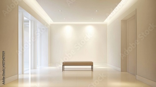 white, room, bench, middle, empty, clean, interior, wall, design, modern, space, light, architecture, indoor, floor, house, ceiling, inside, home, nobody, bright, blank, hall, apartment, background, living, new, building, office, construction, contemporary, style, concept, simple, render, residential, corridor, real, domestic, abstract, decoration, business, luxury, window, door, perspective, three-dimensional, estate, illustration