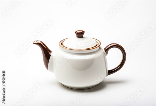 A white teapot sitting on top of a table.