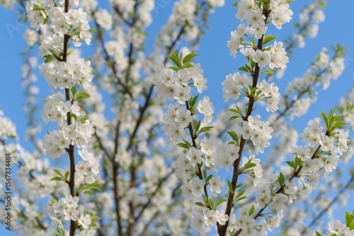A white-flowered tree blossoms during springtime