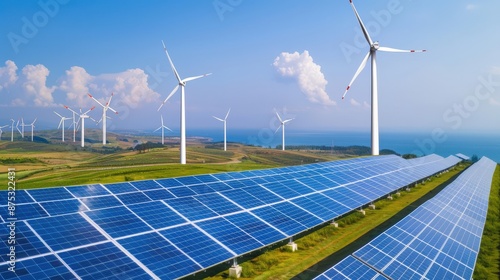 turbine, solar, panel, eco, renewable, ecological, energy, sky, technology, blue, alternative, power, sun, green, environmental, environment, landscape, electricity, photovoltaic, modern, wind, nature, generation, windmill, sunlight, field, clean, innovative, industrial, mobile phone, installation, future, protection, supply, global, climate, collector, plant, mill, background, equipment, sunny, friendly, grass, source, cloud, economical, sustainable