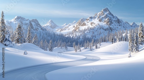 winter, snowy, mountain, road, evergreen, tree, blue, sky, landscape, scenic, drive, nature, digital, illustration, graphic, tablet, cold, weather, high-coloured, colours, peak, calmness, travel, adventure, highway, painting, glacé, picturesque, wilderness, majestic, journey, bright, sky, frosty, serene, horizon, white, lover, peaceful, scenery, crisp, air, wonderland, natural