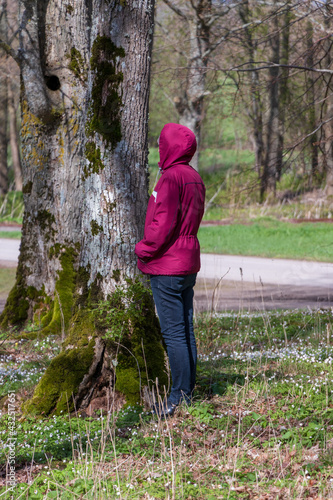 a, black, dark, ground, look, autumn, beanie, tree branch, cap, dead, deciduous, forest, grass, grove, hall, hand, her, hood, hoodie, jacket, jean, leaf, leisure, old, pant, plant, recreation, red, shrub, dirtied, spring, sunny, tree, tree, trunk, twig, walking, winter, woman, wood, timberland