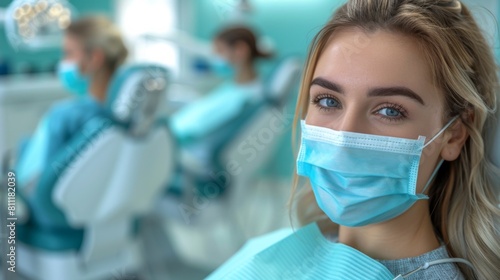 woman, dental, chair, mouth, covered, mask, health care, medicine, dentist, doctor, woman, surgical, adult, occupation, professional, young, expertise, health, protective, workwear, surgery, equipment, working, care, female, indoor, patient, surgeon, hospital, portrait, hygiene, nurse, uniform, looking, smiling, confidence, office, human, face, closeup, man, blond, hair, 1, person