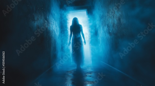 woman, long, dress, walking, dark, foggy, tunnel, eerie, atmosphere, presence, sense, silhouette, adding, mysterious, light, night, horror, skittish, corridor, ghost, black, person, fear, fantasy, halloween, shadow, death, nightmare, alone, darkness, creepy, concept, evil, scarey, dead, abstract, monster, haunted, devil, daemon, background, danger, killer, murder, sorcerer, hell, violence