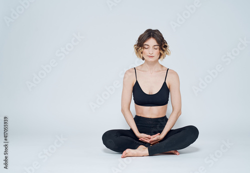 sport, lifestyle, yoga, exercise, fitness, woman, body, adult, caucasian, healthy, training, female, relaxation, gym, beautiful, beauty, health, pose, physical exercise, slim, people, 1, fit, pilates, person, stretching, background, white, leisure, meditation, position, meditating, human, activity, relax, gymnastics, well-being, strength, sitting