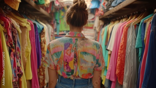 woman, standing, closet, full, colourful, clothes, rainbow, fashion, looking, pattern, female, person, sale, store, dress, shopping, market, style, background, young, beauty, lifestyle, buy, adult, design, shirt, boutique, cotton, retail, wear, textile, fabric, collection, rack, pretty, red, model, business, caucasian, cheerful, client, lady, hanger, summer, choice