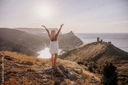 nature, woman, summer, traveler, mountain, landscape, lifestyle, sky, female, sea, young, view, freedom, holiday maker, hiking, vacation, adventure, person, cliff, tour tourism, rock, sun, background, beach, sunset, top, beauty, ocean, sunrise, sunlight, leisure, silhouette, trekking, success, journey, hiker, hill, holiday, coast, blue, peak, island, water, backpack, enjoyment, concept, back, standing, fashion