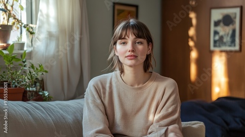 woman, sitting, couch, hand, 1, person, caucasian, indoor, lifestyle, home, interior, woman, portrait, smiling, cute, adult, looking, relaxation, domestic, room, female, children, brown, hair, casual attire, clothing, life, happiness, cheerful, living, beauty, young, sofa, childhood, comfortable, girl, blond, closeup, view, leisure, activity, real, people, pillow, small, children, bedchamber
