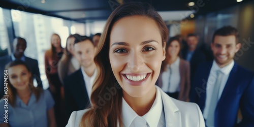 A woman smiles in the midst of a gathering, conveying warmth and friendliness