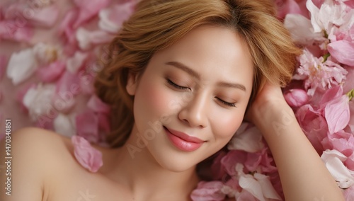 woman, beautiful, flower petals, pink, skin, smile, face, happiness, serene, relaxation, beauty, hair, blond, eye, closed, spa, flower, floral, soft, touch, delicate, freshness, natural, care, calm, wellness, body, peaceful, aesthetic, tranquil, glow, light, pose, gentle, youth, complexion, portrait, closeup, cosmetic, health, lifestyle, elegance, radiant
