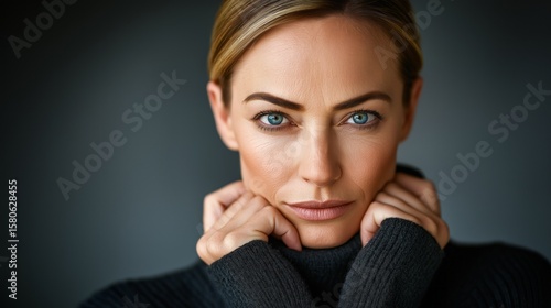 woman, person, portrait, young, female, beauty, face, attractive, caucasian, pretty, fashionable, model, hair, white, closeup, background, 1, isolated, adult, cute, lady, lifestyle, casual attire, look, style, hand, business, brunette, stylish, expression, glamour, sweater, modern, skin, serious, eye, posing, elegance, 20s, sensuality, pensive, lip, thoughtful, thinking, human, smiling, sad, alone, trendy