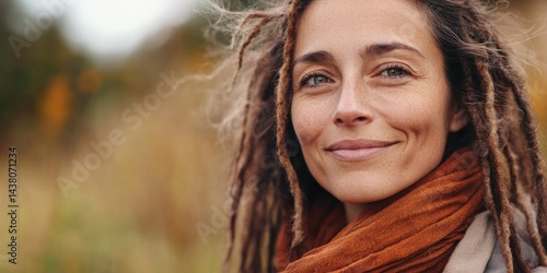 A woman with dreadlocks and a warm smile, standing in a field of wildflowers during sunset, embodying the joy of nature photography.