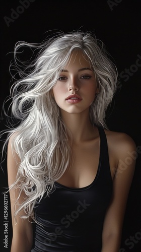 woman, long, blond, hair, black, tank, top, pretty, female, beauty, face, person, fashion, style, portrait, young, attractive, adult, model, glamour, background, lady, caucasian, studio, coiffure, make-up, care, skin, sensuality, white, healthy, cosmetic, closeup, cute, make-up, elegance, gorgeous, salon, smiling, vogue, brunette, sexy, brown, curly, posing, coiffure, grey, treatment, shampoo